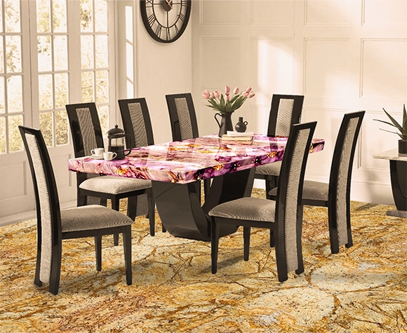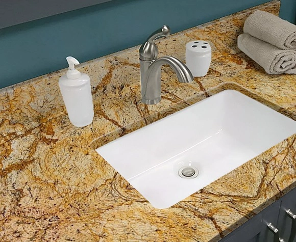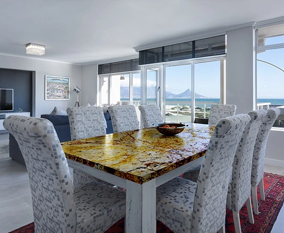Alaska Gold tabletops introduce a touch of luxury and refinement to any room, featuring a rich golden hue that adds warmth and sophistication. The striking color and intricate veining create a visually captivating surface, making these tabletops an elegant choice for a range of styles, from modern to traditional. Designed for durability, Alaska Gold tabletops are resistant to scratches, stains, and heat, ensuring they maintain their beautiful finish over time.