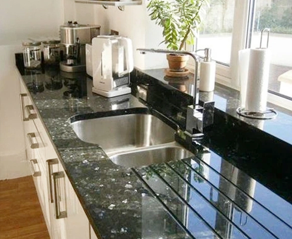 Emerald Pearl countertops add a touch of luxury to any kitchen with their deep, iridescent tones. They are incredibly durable, making them ideal for both cooking and entertaining spaces. Their timeless elegance enhances the overall aesthetic of your kitchen