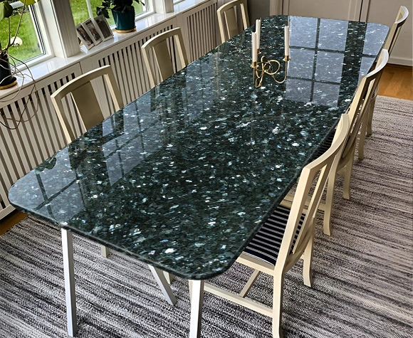 Emerald Pearl tabletops add a touch of opulence with their radiant, deep green hues and sophisticated finish. They are both durable and stylish, making them ideal for enhancing any dining or work area. These tabletops bring a luxurious and elegant charm to your space.