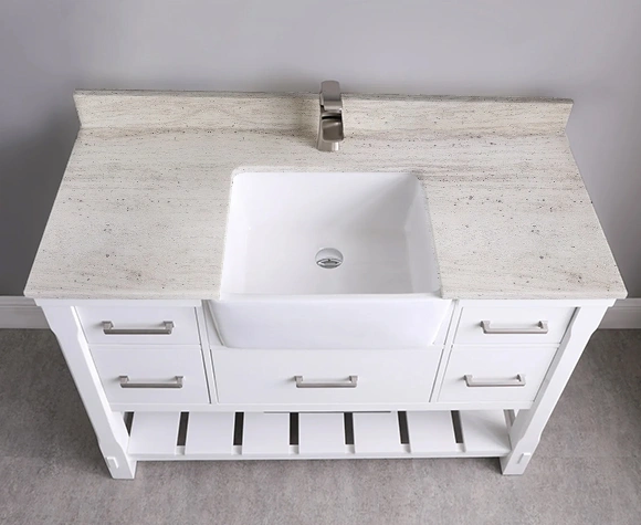 Sandal Ivory bathroom vanities offer a blend of warmth and elegance, featuring soft ivory tones that add a cozy yet sophisticated touch to your bathroom. The subtle, natural patterns of Sandal Ivory bring depth and character, making these vanities a versatile choice that complements various interior styles, from modern to traditional. Built for durability, Sandal Ivory vanities are designed to withstand moisture and daily use, ensuring they maintain their refined appearance over time.