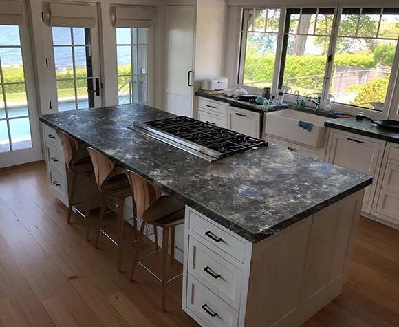 Volga Blue countertops bring a unique, elegant touch to any kitchen with their striking blue tones. Their durability ensures they withstand daily use while maintaining a sophisticated appearance. Ideal for creating a bold, modern focal point in your culinary space.