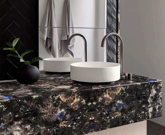 Volga Blue tabletops bring a vibrant and sophisticated touch to any space with their rich blue hue. These surfaces are both stylish and durable, ideal for making a statement while withstanding daily use. Elevate your decor with the striking presence of Volga Blue